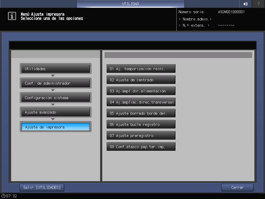 Para anular el cambio, pulse Cancelar. En cualquiera de los dos casos, vuelve a aparecer la pantalla Menú Ajuste impresora.