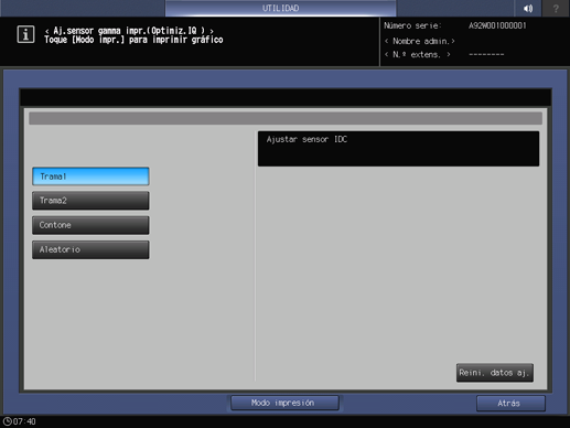 Se imprime un patrón de prueba y la pantalla vuelve automáticamente a la pantalla Aj.sensor gamma de impresora.
