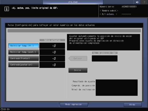 Se visualiza la pantalla Aj. autom. pos. límite original de ADF.