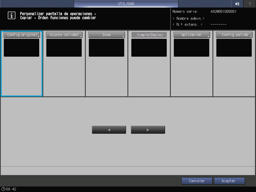 Cambie el orden de visualización de los elementos de configuración que se muestran en la mitad superior de la pantalla COPIAR.
