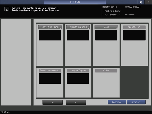 Permite modificar el orden de visualización de los elementos de configuración mostrados en la pantalla de almacenamiento.
