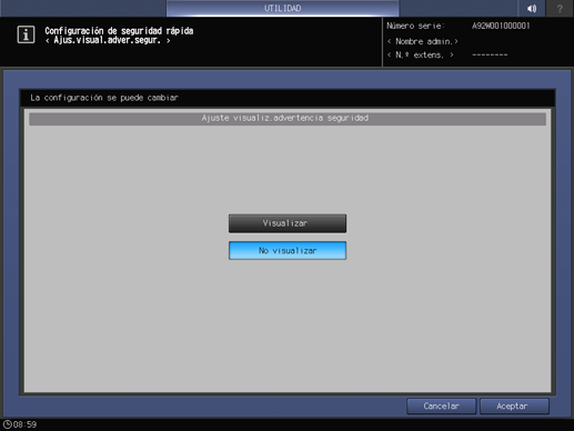 Esta configuración es la misma que la de Conf.segur.rápida - Mostr.advertc.seg., a la que se accede desde la pantalla UTILIDAD.