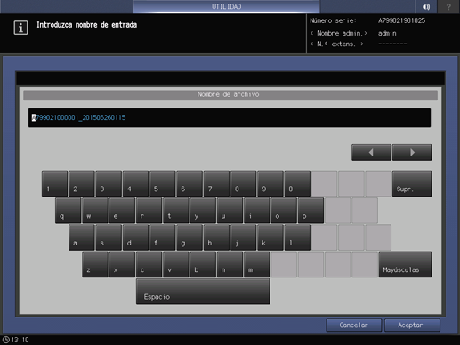 explicación adicionalSi no desea cambiar el nombre de archivo, pulse Aceptar sin introducir otros caracteres.
