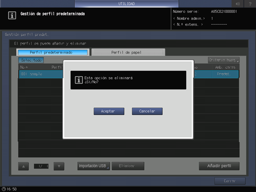 Para añadir un nuevo perfil predeterminado a esta máquina, se requiere una configuración de servicio. Para obtener más información, póngase en contacto con el servicio de asistencia técnica.