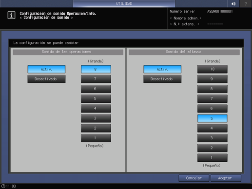 explicación adicionalPulse Activ. para activar el sonido de las operaciones clave y, a continuación, seleccione el volumen deseado.