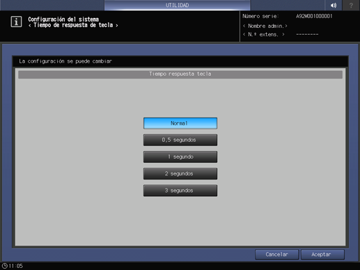 Seleccione el intervalo de tiempo para obtener la respuesta de la máquina cuando se pulsa una tecla o botón en el panel táctil o en el panel de control.