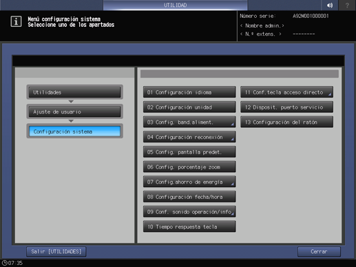 explicación adicionalPara anular el cambio, pulse Cancelar. En ambos casos, la pantalla vuelve a Menú configuración sistema.