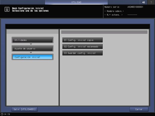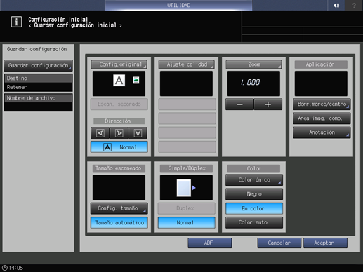 Pulse Configuración inicial en la pantalla Menú Ajuste de usuario y, a continuación, pulse Guardar config. inicial.