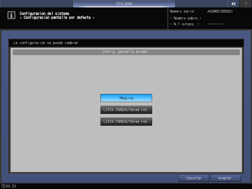 Seleccione la pantalla inicial o predeterminada que se va a visualizar cuando se encienda el interruptor de alimentación secundario.