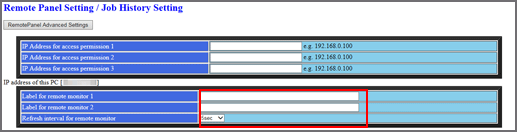 Aparece la pantalla Remote Panel Setting/Job History Setting.