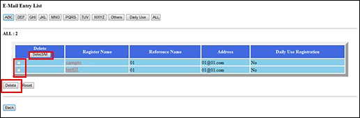 explicación adicionalHaga clic en la casilla de verificación de la columna Eliminar del elemento que se vaya a borrar y, a continuación, haga clic en Delete.