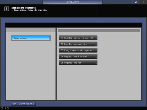 Premere Regolazione nella schermata MACCHINA per visualizzare la schermata Menu Regolazione.