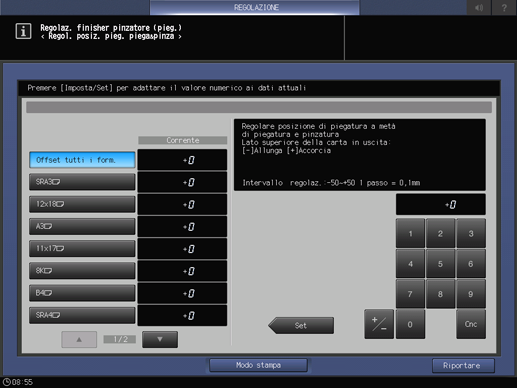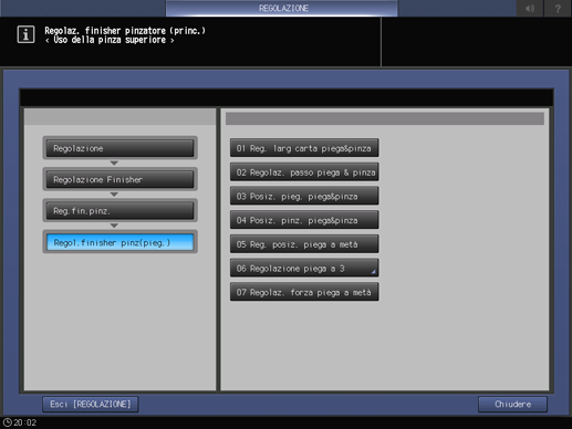 Premere Uscita Stampa per tornare alla schermata Regol. posiz. pieg. piega&pinza.