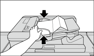 precondizioneNon caricare il numero di originali che supera la capacità dell'alimentatore documenti. Altrimenti, l'originale potrebbe essere inceppato o danneggiato. Se un lavoro supera il limite di capacità dell'alimentatore documenti, occorre dividerlo in diversi blocchi per scansionare i dati. Per informazioni dettagliate, fare riferimento a [Scans. separata]: gestire l'originale scansionato come un unico lavoro.