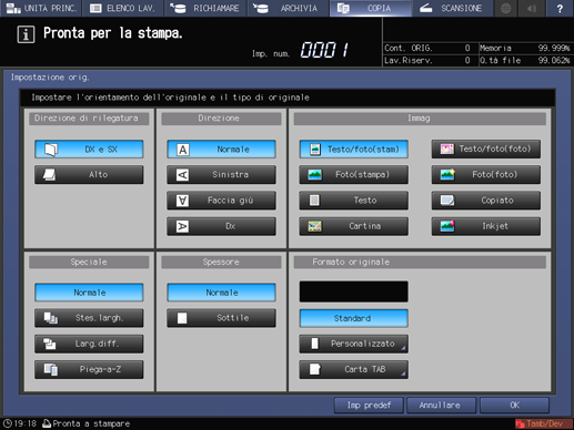 Premere la scheda COPIA per visualizzare la schermata COPIA.