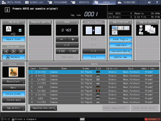È possibile visualizzare fino a 4 tasti di scelta rapida per le impostazioni applicazione usate di frequente in Applicazione nella schermata COPIA. Tali tasti consentono di impostare la funzione applicazione a un singolo tocco, o passare direttamente alla schermata di impostazione di ognuna. L'impostazione dei tasti di scelta rapida è eseguibile in Impostazione utente in UTILITÀ.