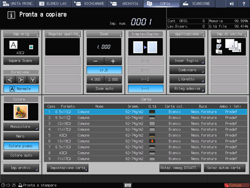 È possibile visualizzare fino a 6 icone che rappresentano funzioni applicative specializzate in Applicazione nella schermata COPIA.