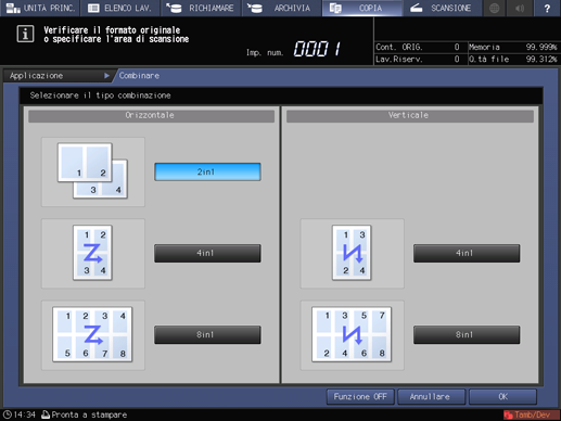 L'icona Combinare e il tasto di scelta rapida sono visualizzati in Applicazione nella schermata COPIA.