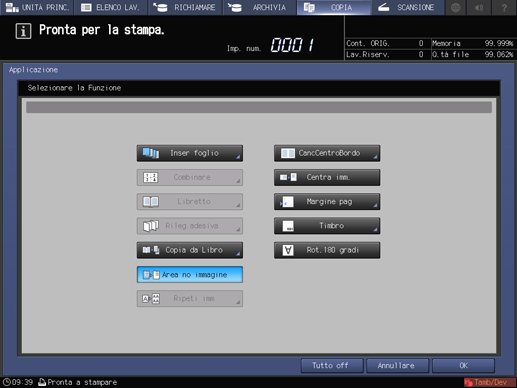 L'icona Cancellazione area non immagine e il tasto di scelta rapida sono visualizzati in Applicazione nella schermata COPIA.