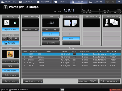 spiegazione aggiuntivaPer le copie 1 Lato, sarà applicata solo l'impostazione del lato anteriore.