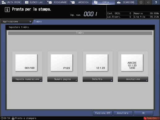 L'icona e il tasto di scelta rapida Timbro sono visualizzati in Applicazione nella schermata COPIA.