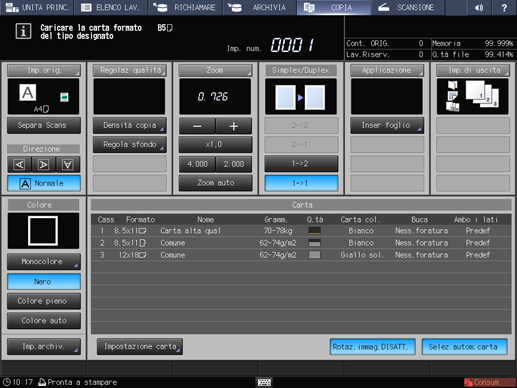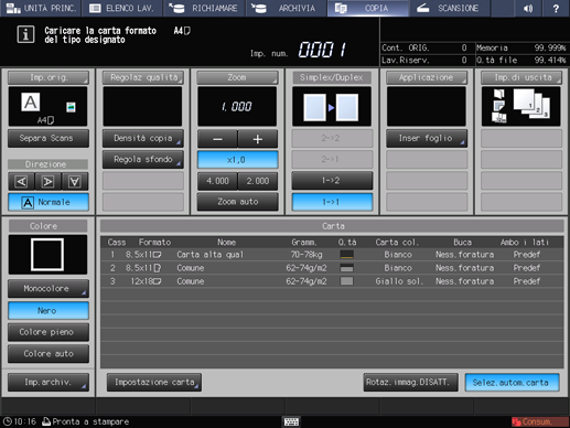 Premere la scheda COPIA per visualizzare la schermata COPIA.