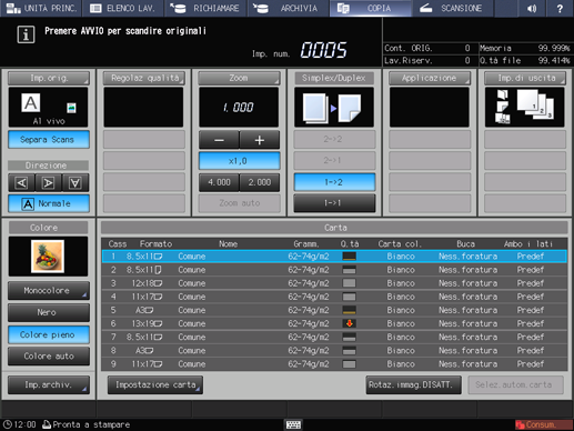 spiegazione aggiuntivaLa stampa non è avviata senza tornare alla schermata COPIA. Accertarsi di visualizzare la schermata COPIA.
