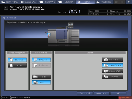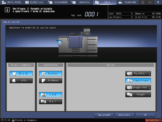 Premere la scheda COPIA per visualizzare la schermata COPIA.