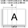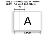 2 pezzi: applica due scanalature. Posizione scanalatura (2): Carta La: (Posizione di stampa (1) + 1,0) mm a (La - 46) mm (incrementi di 0,1 mm) Carta Lb: (Posizione di stampa (1) + 1,0) mm a 290 mm (incrementi di 0,1 mm) |