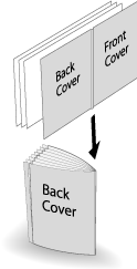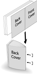 Piega & Pinza Selezionare Cordonatura - ON nella schermata PiegaPinza. | Quando si seleziona Con copertina in combinazione con Opuscolo della funzione dell'applicazione, una scanalatura è applicata solo a una copertina per Piega & Pinza, e la copertina è piegata e pinzata con il corpo. Questa funzione può essere combinata con la funzione di rifilatura del bordo di taglio. |