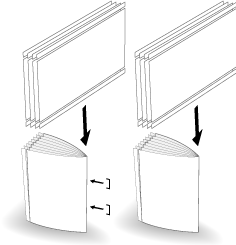 Piega & Pinza (+ Rifilatura) Selezionare Rif. laterale - ON nella schermata di impostazione PiegaPinza. Selezionare Senza copertina in Opuscolo di Applicazione. o Schermata di impostazione Piega a metà multipla (+ Rifilatura) Piega & Pinza Selezionare Rifilatura laterale - ON. Selezionare Senza copertina in Opuscolo di Applicazione. | Applica la rifilatura laterale a tutte le pagine elaborate da Piega & Pinza o Piega a metà multipla. |