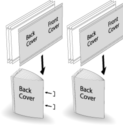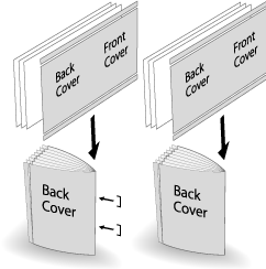 Quando Rifilatura laterale è selezionato in PiegaPinza o Multi centr e anche Con copertina o Senza copertina è selezionato in Opuscolo di Applicazione, la rifilatura laterale è applicata solo a una copertina o a tutti i fogli, compresi la copertina e il corpo.