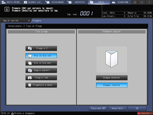spiegazione aggiuntivaSelezionare quello desiderato tramite in tasti in Tipo piega.