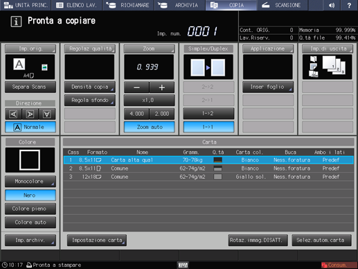 Premere la scheda COPIA per visualizzare la schermata COPIA.