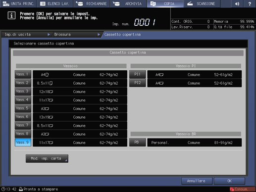 spiegazione aggiuntivaLa selezione di una voce da Vassoio 1 a Vassoio 9 consente di stampare le copertine.