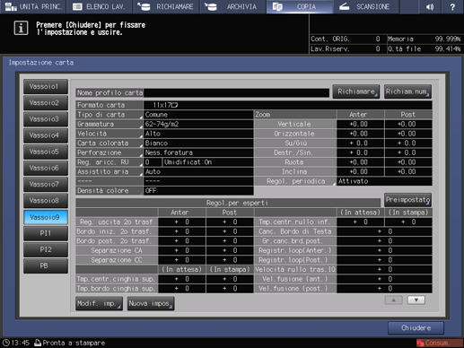spiegazione aggiuntivaQuesto punto dell'impostazione carta non è necessario se il vassoio selezionato al punto 10 è già stato specificato per le copertine. Procedere con la fase 13.