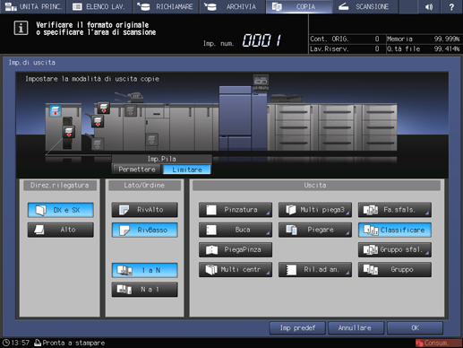 Selezionare il vassoio di uscita secondario (inf.) come vassoio di uscita.