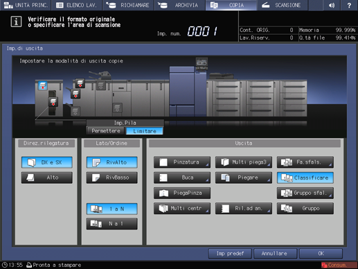 Premere OK nella schermata Imp.di uscita.