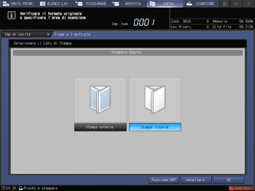 precondizioneCome per la modalità Lato, RivAlto è selezionato automaticamente in combinazione con Stampa interna e Lato giù in combinazione con Stampa esterna.