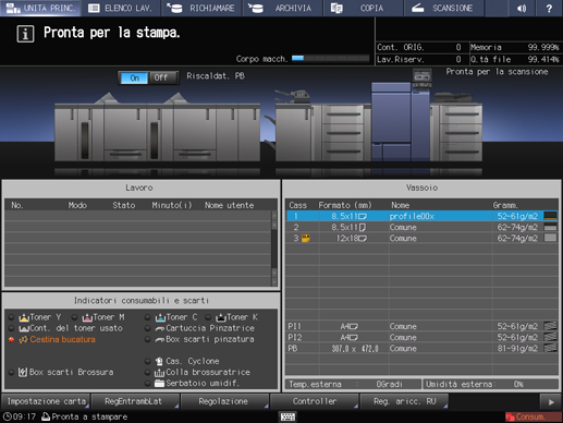 Premere l'indicatore del Cestino bucatura nell'area Indicatori consumabili e scarti della schermata MACCHINA.