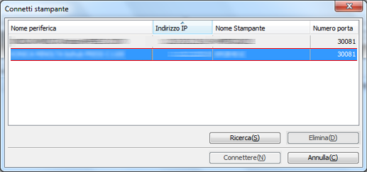 Nella schermata Connetti stampante, è possibile selezionare una stampante da connettere.