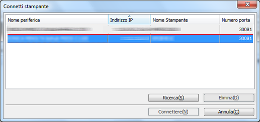 Eliminare una stampante desiderata dall'elenco stampanti nella schermata Connetti stampante.