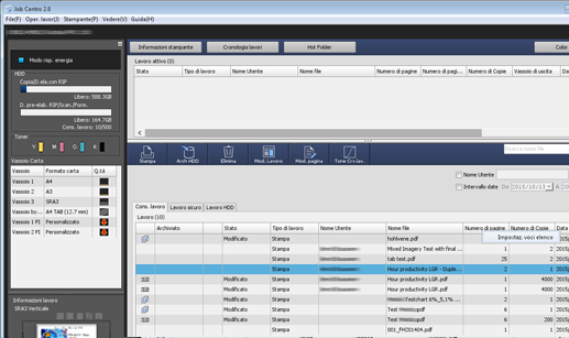 spiegazione aggiuntivaQuando si seleziona Evidenzia lavori non stampati, i lavori elencati come Non stampati in Data fine stampa saranno evidenziati nell'elenco Conserva lavoro, nell'elenco Lavoro sicuro e nell'elenco Lavoro HDD.
