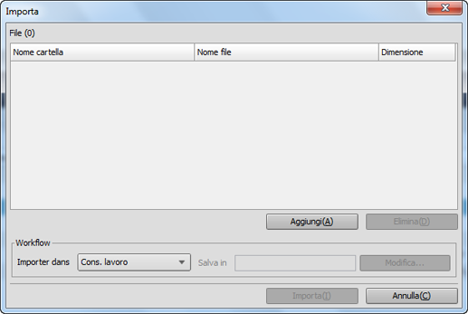 Aggiungi | È visualizzata la schermata Sel.file di import. e i file selezionati sono aggiunti all'elenco. |