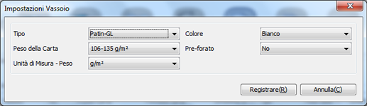 Per il vassoio PI, Colore, Nome colore e Preforato non sono disponibili.