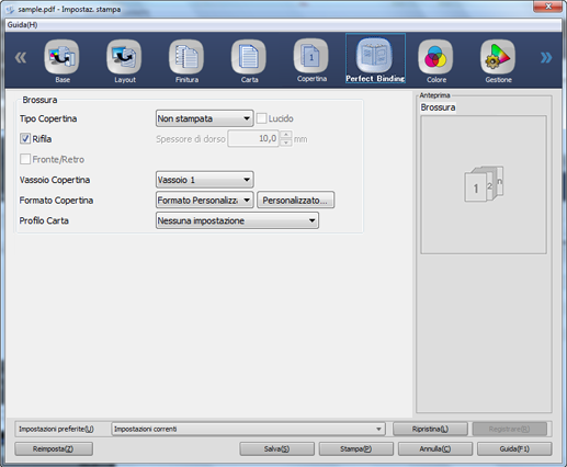 È possibile impostare la brossura dell'impostazione di stampa.