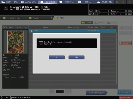 Il lavoro selezionato è eliminato e la schermata torna alla schermata RICHIAMA.
