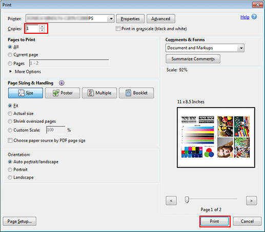 Nella schermata Stampa, inserire le Copie e fare clic su Stampa.