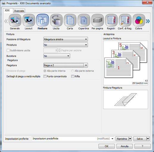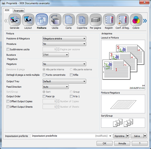 È possibile impostare le seguenti voci nella scheda Finitura.