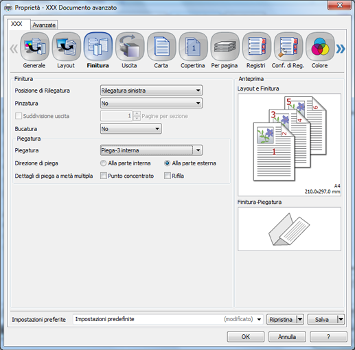 Quando si imposta il driver di stampa, accertarsi che non vi siano impostazioni precedenti rimaste in ogni voce nelle schede Layout, Finitura, Copertina, ecc.